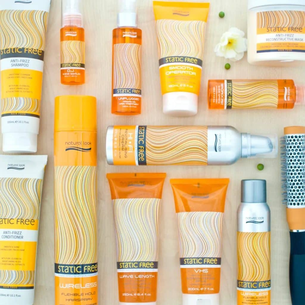 The Natural Look Static Free range is a line of hair products designed to combat frizz and static electricity by using natural ingredients to smooth, strengthen, and protect hair. The collection includes shampoos, conditioners, and styling products like leave-in creams and serums that are suitable for various hair types, including color-treated and curly hair. Key features include being sulfate- and paraben-free, providing heat protection, and leaving hair looking smooth and feeling healthy without being weighed down.