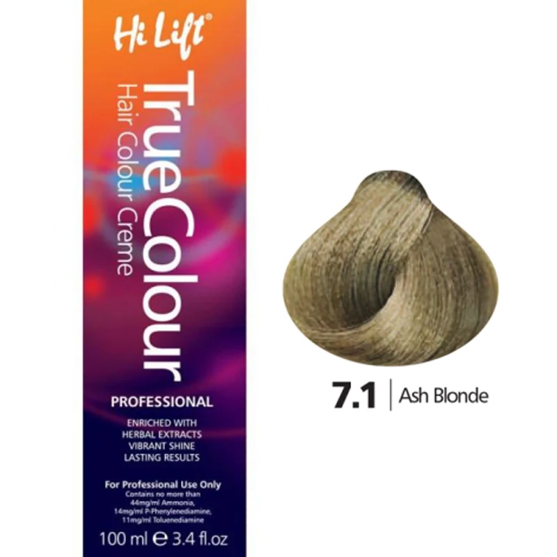 Hi Lift True Colour Hair Color Cream 7.1 Ash Blonde 100ml.