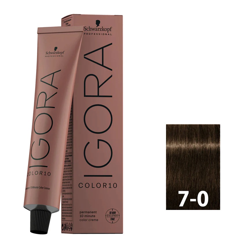Achieve a natural blonde shade in just 10 minutes with SCHWARZKOPF IGORA COLOR10 7-0 60ML. This permanent hair colour delivers a rich, natural blonde tone, perfect for a refined, salon-quality look. The fast-acting formula is ideal for those with busy schedules, providing even coverage and long-lasting colour in minimal time.