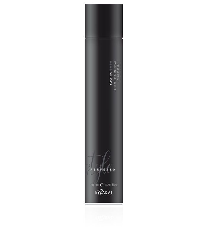 The Kaaral Style Perfetto Sculpting Extreme Hold Finishing Spray controls and sculpts any desired hairstyle or look. It fixes the movements achieved with drying and styling, preserving hair colour and shine. It also protects from harsh atmospheric elements with its anti-humidity action. It leaves no residue, and contains UV filters.